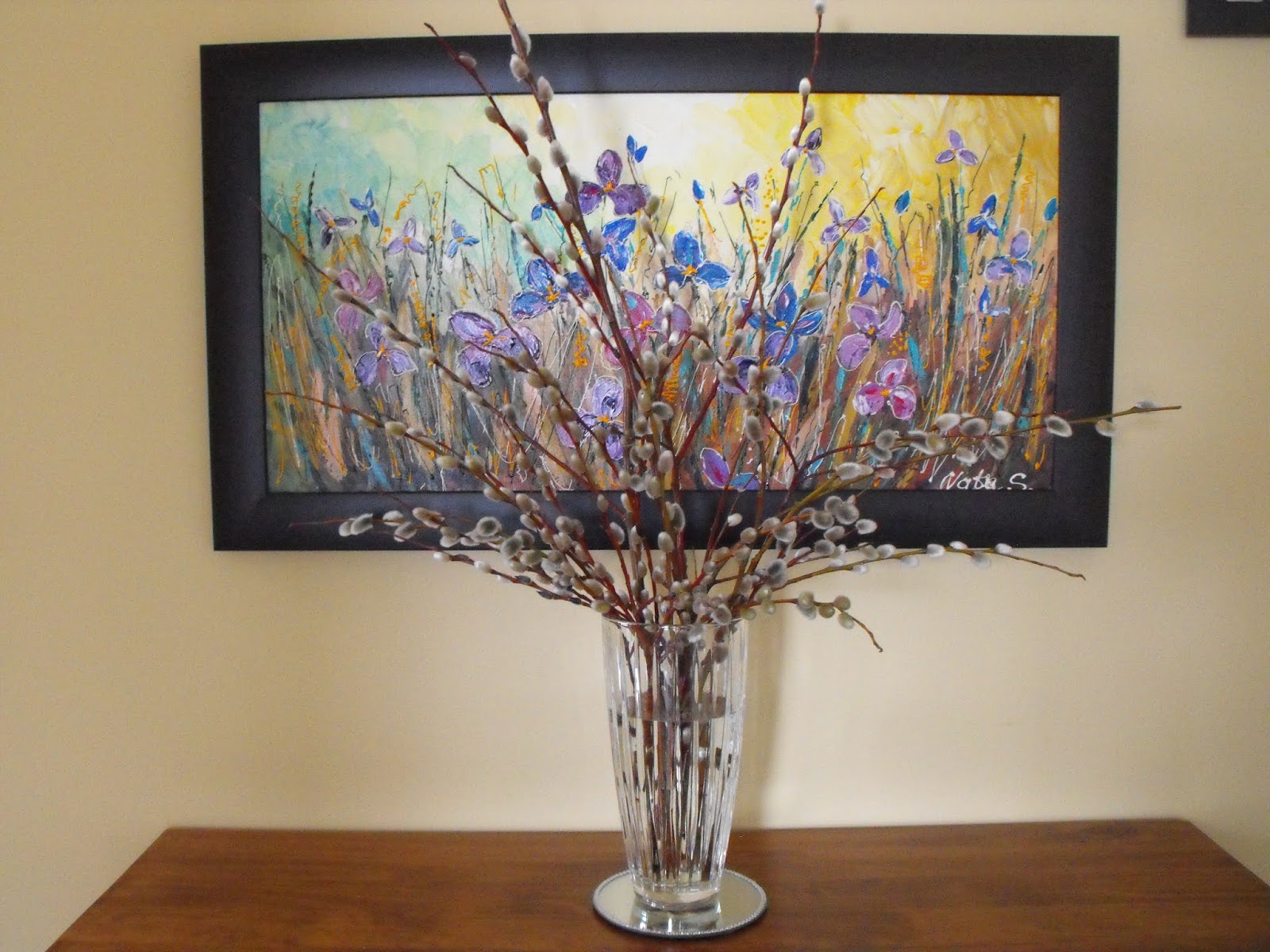 Final Garden Picture is a vase full of willow branches in the front hallway. The branches are lined with fuzzy silver tufts of catkins; they are a lovely sign of spring, and a gift from our neighbour.